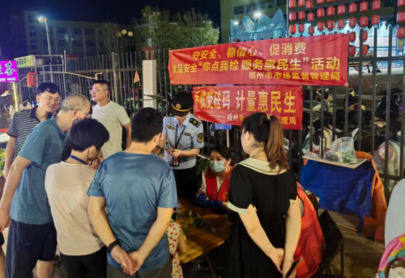 盛夏时节,广西壮族自治区梧州市“水云天”夜市人头攒动,各类美食琳琅满目、喷鼻气扑鼻。7月3日晚,梧州市市场监管局结合梧州市食物药品查验所、长洲区市场监管局以及、、街道、社区、夜市创办方、“八桂食安”意愿者构成结合查抄组,对“水云天”夜市开展食物平安整治“夜步履”。通过“合规查抄+食物平安快检”,双管齐下,进一步规范夜市运营次序,让“炊火气”飘出“味”。