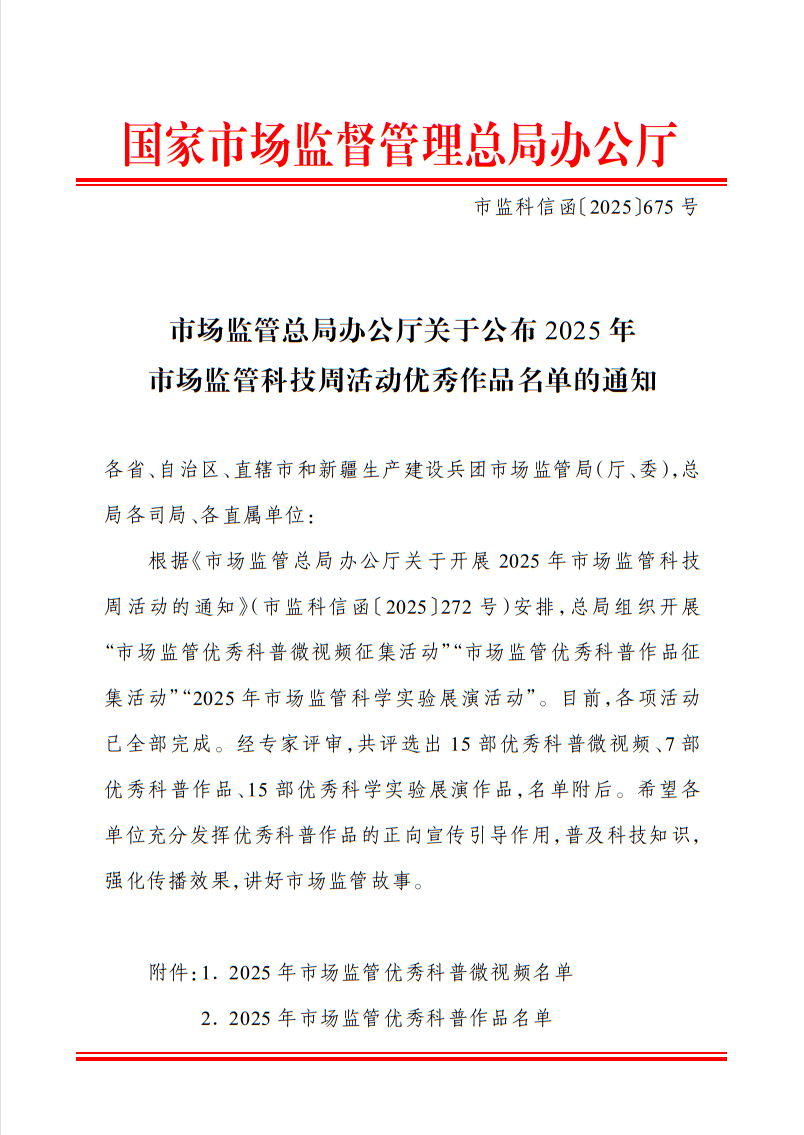 2025年市场监管科技周优良做品名单的通知》,咸阳市食物药品查验检测核心从创做品《桶拆水里的“不速之客”》获评“2025年市场监管优良科普微视频优良做品”。